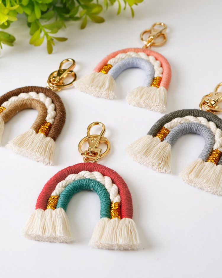 Handmade Bohemia Wedding Cotton Rope Braided Colorful Macrame Weaving Tassel Bag Car Charm With Gold Key Ring KeychainUS$9.85